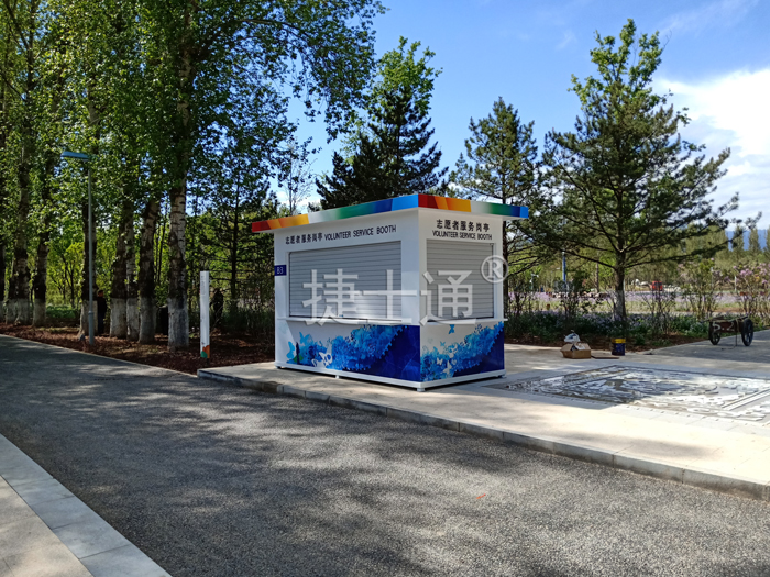 便民志愿者服務亭用于世園會中心,城市街道等區(qū)域,目的是為志愿者們提供便民服務,便民服務亭的款式,大小,等細節(jié),功能都可以規(guī)劃設計。一般尺寸為2*3,其他特殊尺寸均可定制;