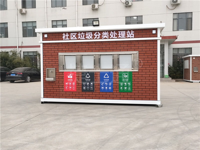 這樣房屋有四個(gè)分類:有害垃圾、其他垃圾、可回收垃圾、廚余垃圾,每個(gè)箱體采用不用顏色區(qū)分,方便用戶辨別使用。