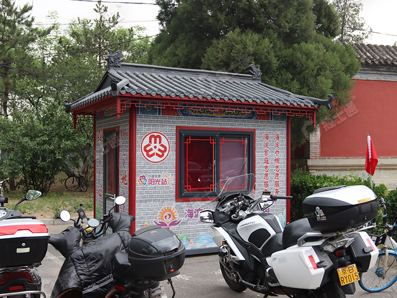 捷士通生產(chǎn)的仿古款式志愿者服務亭落地在海淀區(qū)