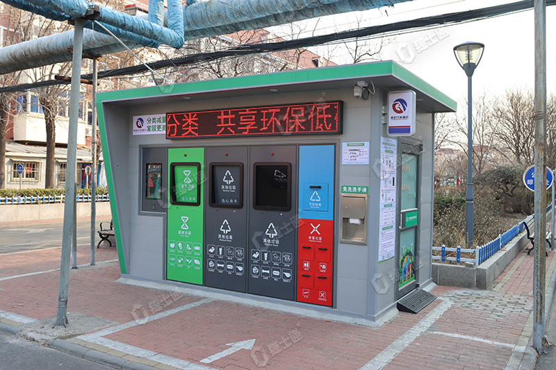 捷士通生產(chǎn)的本批次垃圾分類房采用了4個(gè)頭口的設(shè)計(jì),配備了電子屏和積分系統(tǒng),旨在成為小型社區(qū)的垃圾處理中心