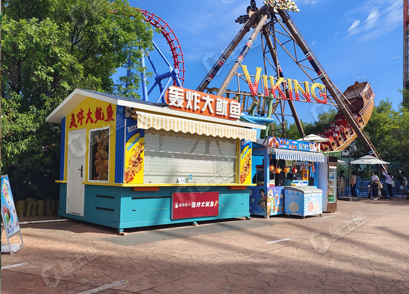 捷士通設計和生產(chǎn)的售貨崗亭用于天津市方特內部,旨在方便游客購買飲用水和實物商品