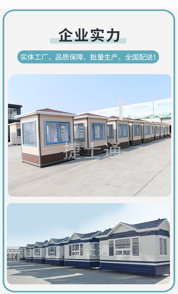 疫情當下,應北京市政府文件,天津市捷士通科技有限公司積極參與疫情執(zhí)勤保安崗亭的制作和運輸及安裝工作。大力支持北京市的各個小區(qū),街道,村口,鄉(xiāng)鎮(zhèn)路口的疫情檢查安檢崗亭的采購工作,在此特別為北京地區(qū)的保安崗亭推薦幾個款式,也是在2020年初,天津和北京及河北地區(qū)實際性采購比較多的款式。此類款式特點:保溫隔熱性能強,工期短,交貨快,可以大批量生產(chǎn),能夠滿足客戶的需求。