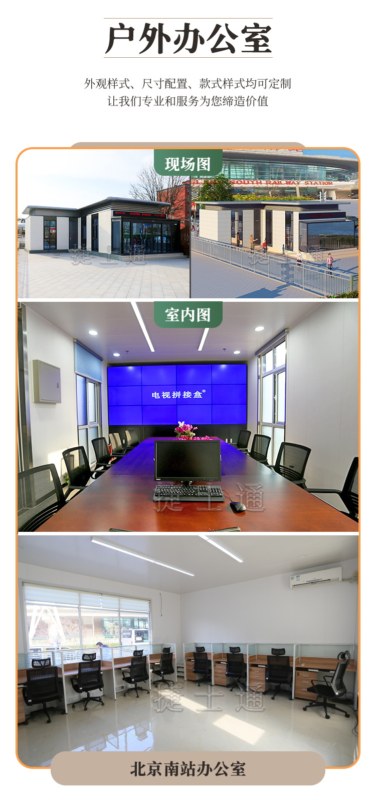 捷士通移動房屋廠家不僅可以生產小型崗亭,還可以生產各類單位大型門衛(wèi)室、戶外辦公室等