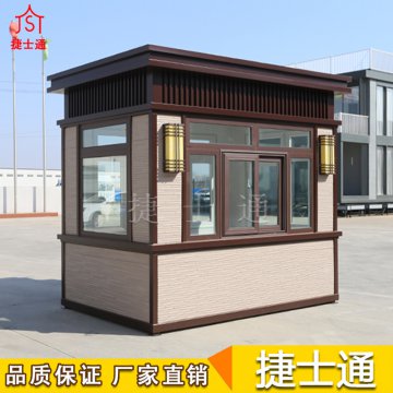 框架為全鋼骨架,外墻板為先進的建筑外墻板,具體完好的保溫隔熱性能,是以往外墻板材料無法比擬的,正常使用年限10-20年之久,可謂是保安崗亭中的上品。