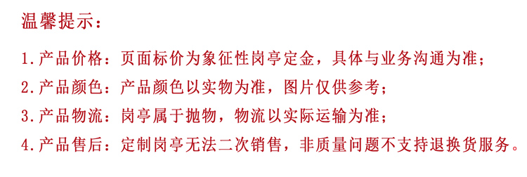 【內(nèi)吊頂】:豪華PVC扣板【外 頂】:1.2mm鍍鋅板焊接,SBS瀝青防水卷材、瀝青瓦
