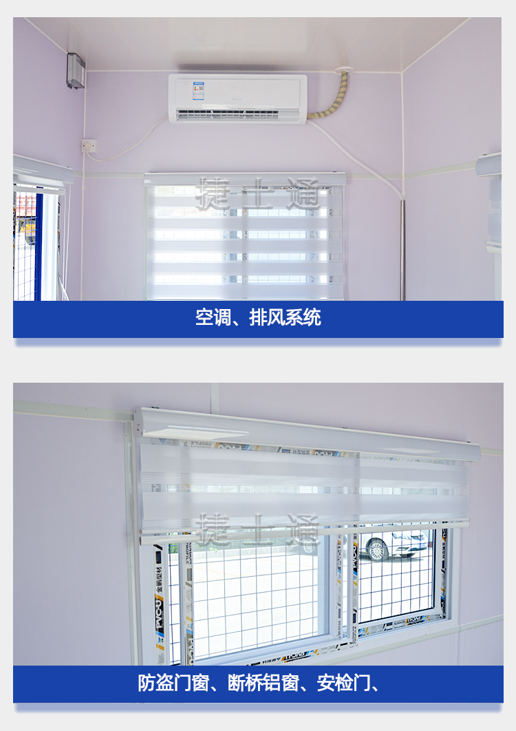 門窗可以采用斷橋鋁門窗,外面可以安裝網(wǎng)面窗戶,為了小窗戶的安全,玻璃一般采用鋼化加厚玻璃,更加保證內(nèi)部的工作人員的安全