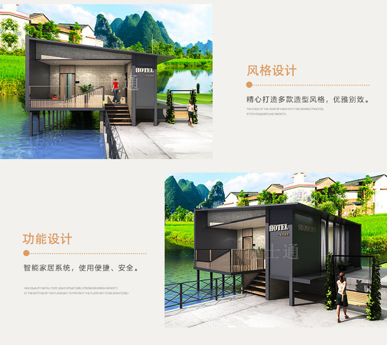 標準配置 :外墻:優(yōu)質金屬雕花板/氟碳漆板/纖維水泥板可選。纖維水泥板有好的防水性能,在衛(wèi)生間,浴室等高濕度的地方,仍能保持性能的穩(wěn)定,不會膨脹或變形。 內墻:復合木地板/纖維板水泥板......龍骨:優(yōu)質鍍鋅方鋼龍骨焊接。室內吊頂:優(yōu)質PVC吊頂/納米纖維板可選。底座:鍍鋅方鋼焊接加黑竹木板模板。室內地板:優(yōu)勢防滑鋁板/防滑瓷磚可選。門窗:斷橋鋁門窗、防盜門 。其他:照明、配電系統(tǒng)......可根據客戶需求進行特殊定制。聯(lián)系電話:15822882616,公司網址:m.91porm.net。