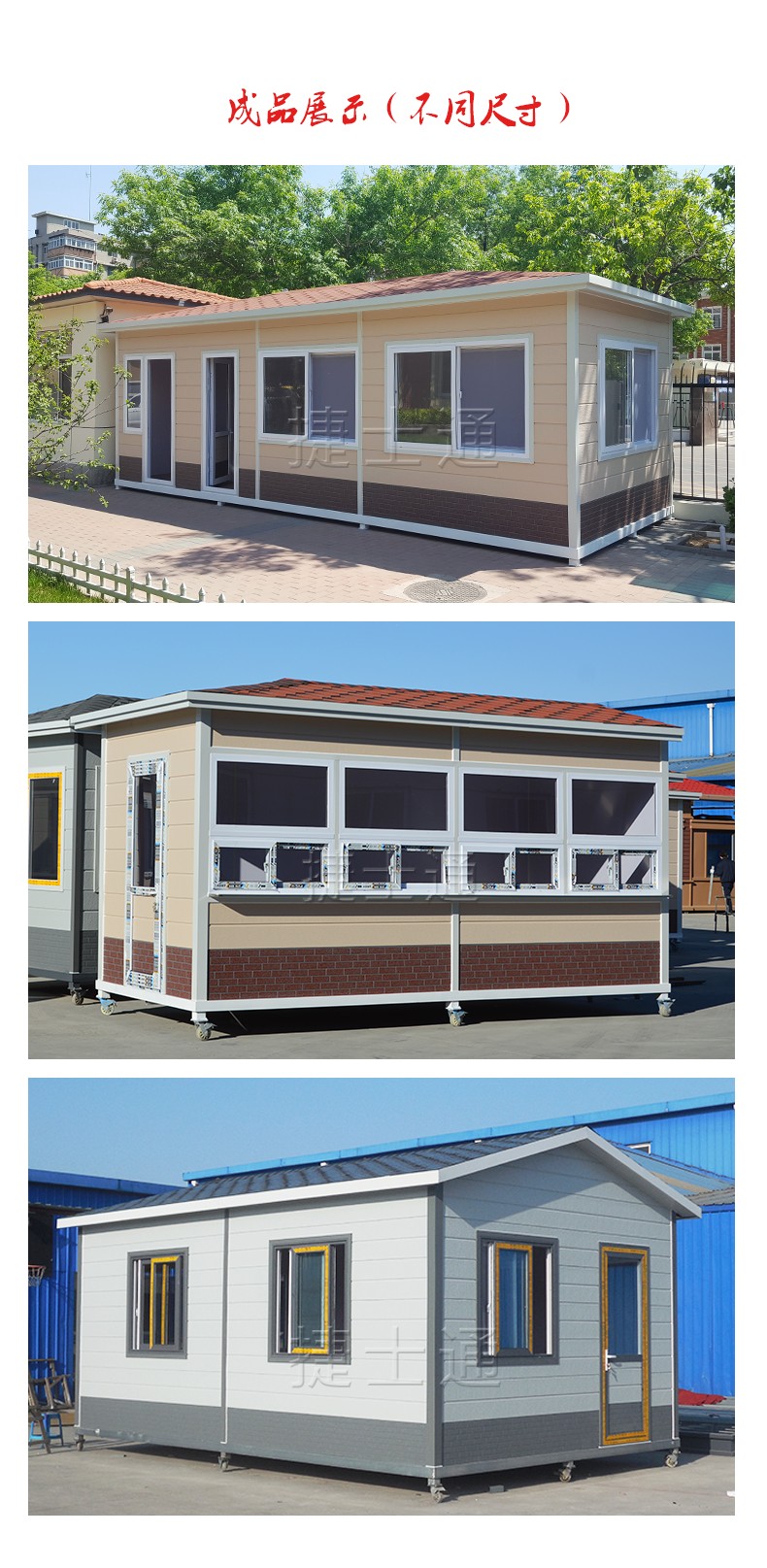 其他標(biāo)準(zhǔn)配置:墻體含保溫材料,外墻浮法玻璃,屋頂鍍鋅板靜電噴涂,PVC吊頂,地板可定做防滑鋁板/復(fù)合木地板,墻體玻璃材質(zhì):鋼化、中空、有色玻璃等可定做,電箱、開關(guān)、插座、暗敷電線、照明燈、桌面、抽屜、鍵盤托、空調(diào)架等。聯(lián)系電話:15822882616,公司網(wǎng)址:m.91porm.net