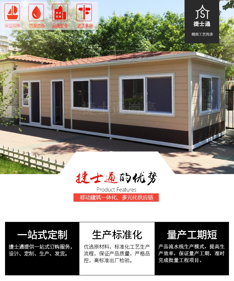 標(biāo)準(zhǔn)配置:墻體含保溫材料,屋頂鍍鋅板靜電噴涂,PVC吊頂,地板可定做防滑鋁板,電箱、開關(guān)、插座、暗敷電線、照明燈、桌面、抽屜、鍵盤托、空調(diào)架等??杉优洌嚎照{(diào)等??头稍儫峋€:15822882616。公司網(wǎng)址:m.91porm.net