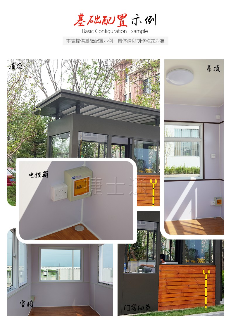 崗亭內(nèi)配:照明,電源插座,開關,暗敷電線,配電箱,室內(nèi)空凋架.