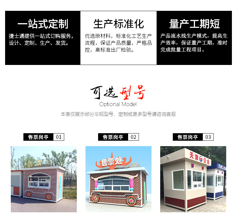 售票亭適用地點(diǎn):可廣泛用于小區(qū)、景區(qū)、公園,購(gòu)物中心、商場(chǎng)、游樂(lè)園等。