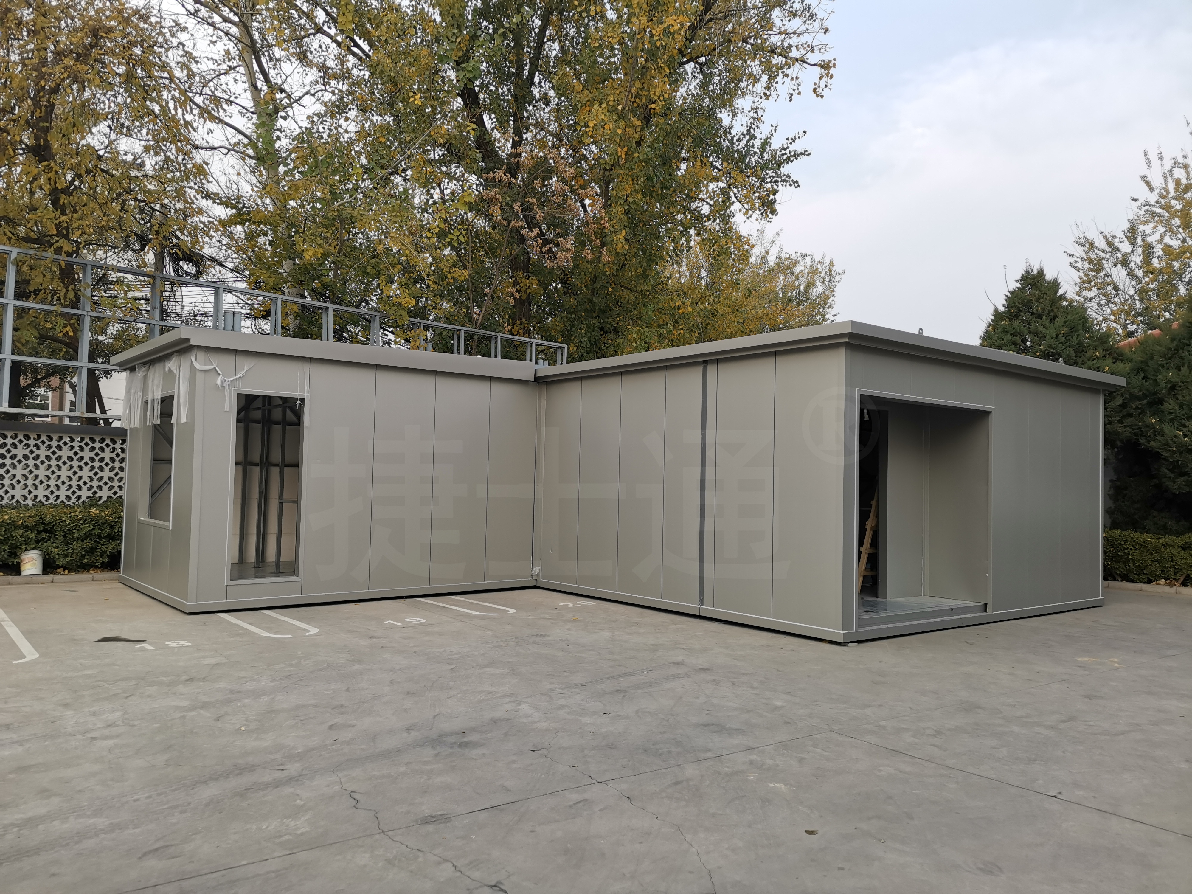 在工廠將整體部分搭建完成,到現(xiàn)場(chǎng)進(jìn)行裝配式拼接,面積尺寸大,可做招待中心、市政辦公室等用途