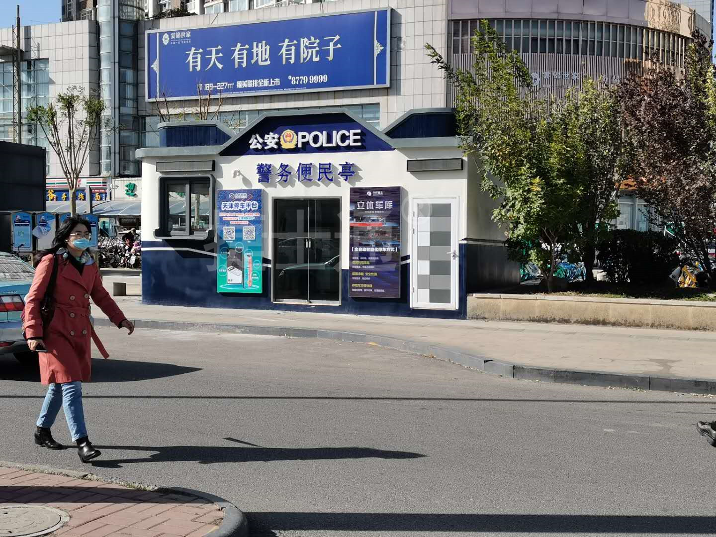 在公交處設(shè)立值班室成品房,可加強(qiáng)治安力度,提升群眾生活安全質(zhì)量,顏色采用警藍(lán)色和白色,整體莊嚴(yán)肅靜,深入人心 。