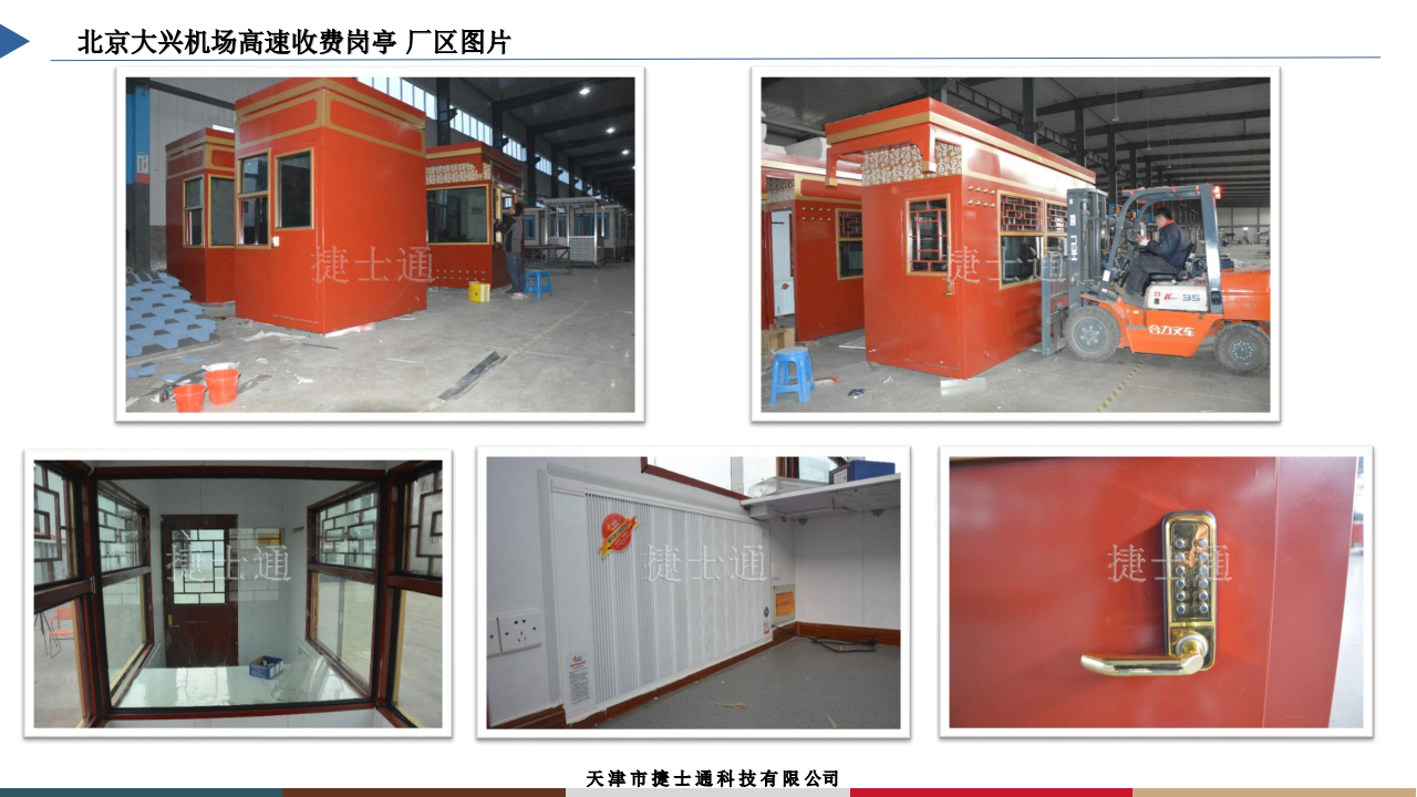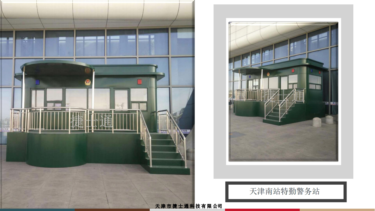天津市捷士通科技有限公司從創(chuàng)建以來,一直潛心致力于崗?fù)さ脑煨蛣?chuàng)新、品質(zhì)的提升,短短幾年時(shí)間,成為了同行業(yè)的佼佼者。公司的高速發(fā)展,離不開公司高素質(zhì)的人才隊(duì)伍和先進(jìn)的經(jīng)營管理模式。公司一向本著“質(zhì)量求生存,創(chuàng)新求發(fā)展”的精神,引進(jìn)國內(nèi)外先進(jìn)的機(jī)械設(shè)備,應(yīng)用新技術(shù)、新工藝、新材料注重質(zhì)量管理體系的完善,培養(yǎng)了大批經(jīng)驗(yàn)豐富的技術(shù)人員,以“科學(xué)、嚴(yán)謹(jǐn)、務(wù)實(shí)”的經(jīng)驗(yàn)豐富精神,生產(chǎn)出各種不同的檔次的“質(zhì)優(yōu)、價(jià)廉、新穎”產(chǎn)品以滿足各類客戶的不同需求。 通過各部門的效率高 協(xié)作,公司力求從產(chǎn)品生產(chǎn)到銷售的每一細(xì)節(jié)都做到精益求精,以實(shí)現(xiàn)公司效益與客戶利益的雙贏共贏。 天津市捷士通科技有限公司自建立以來,以其過硬的產(chǎn)品質(zhì)量、時(shí)尚典雅的外觀設(shè)計(jì)、合理的價(jià)格、健全的營銷網(wǎng)絡(luò)、優(yōu)良的售后服務(wù)贏得了廣大客戶的信任和青睞。 捷士通崗?fù)ひ猿霰姷钠焚|(zhì),超卓的性能和優(yōu)雅的外觀受到廣大消費(fèi)者的追捧,成為黨政機(jī)關(guān)、企事業(yè)單位、場(chǎng)館、bu隊(duì) 、高價(jià)住宅區(qū)、停車場(chǎng)、售賣場(chǎng)所、旅游景區(qū)的優(yōu)選 產(chǎn)品.中國石油、天津西站、天津東站、天津市容委、天津建筑設(shè)計(jì)院、天津南開大學(xué)、天津(水滴)體育館、正信集團(tuán)、寧發(fā)集團(tuán)、濱海旅游區(qū)、游輪母港。 天安門服務(wù)亭、兩會(huì)安檢亭、朱日和軍演防彈崗?fù)?、央視朗讀亭、碧桂園地產(chǎn)、華夏幸福地產(chǎn)、北京世園會(huì)志愿者服務(wù)亭等等都是問我們的客戶。